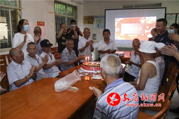 活動(dòng)現(xiàn)場(chǎng),他們?yōu)槔先藗兯腿ヅD?、礦泉水、牙膏等生活用品,宣講防疫小知識(shí),并為11位老人集體慶生,為他們精心準(zhǔn)備了生日蛋糕和禮品。老人們圍桌而坐,一起唱生日歌,現(xiàn)場(chǎng)其樂融融。