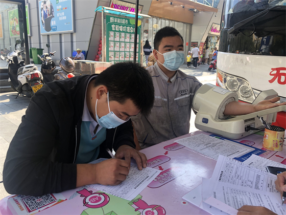 家在西安的劉盼與妻子分屬兩地工作,每逢節(jié)假日他都會開車來安康與妻子一起團聚,中秋這天照例和妻子出門過二人世界的劉盼在獻血車前停下了腳步?!吧洗卧谖靼搏I血都好幾年前了,今天日子好,我去獻個血吧?”說完劉盼拉著妻子一起上了獻血車。等待初篩結(jié)果過程中,他一直拉著妻子的手說笑,夫妻倆顯得親密無間。檢驗結(jié)果合格后劉盼很爽快地要捐獻400毫升血液。