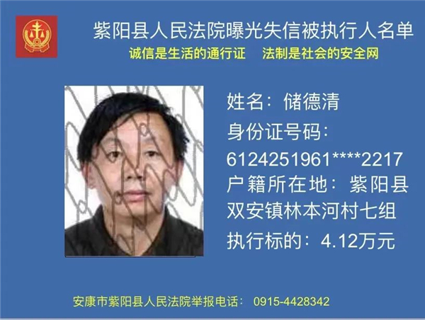 曝光失信 | 紫陽縣人民法院:關(guān)于敦促儲德清履行法定義務(wù)的公告