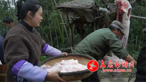 就這樣,抖音號(hào)“菲兒姑娘”出發(fā)啦。她平時(shí)負(fù)責(zé)策劃及出鏡。在2023年2月9日的采訪中,楊菲對(duì)華商報(bào)記者說:“我們的視頻一般是從食材的選取開始拍,比如炒臘腸,每個(gè)產(chǎn)品都是經(jīng)過精挑細(xì)選,也都是選取當(dāng)?shù)剞r(nóng)戶自己養(yǎng)殖的豬,整個(gè)制作過程也都會(huì)拍進(jìn)視頻里,就會(huì)不斷有粉絲朋友詢問購買臘腸、臘肉?!?022年11月份,僅用半個(gè)月時(shí)間該賬號(hào)幫村民賣完了5000余斤豬肉,還有不少客戶已經(jīng)在預(yù)定明年的臘肉,這讓附近的農(nóng)戶信心倍增。