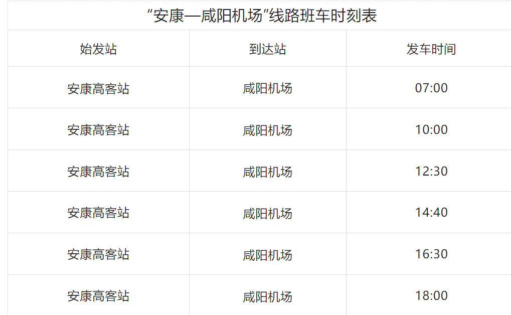明日起,“安康—咸陽機場”客運線路發(fā)車時間調整