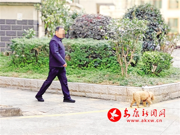12月2日,有市民在某小區(qū)內不牽繩遛狗。鄭時根 攝?