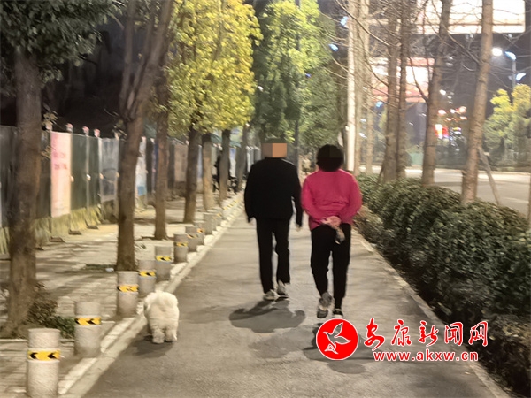 1月11日,在吾悅廣場附近,有市民遛狗不牽繩。