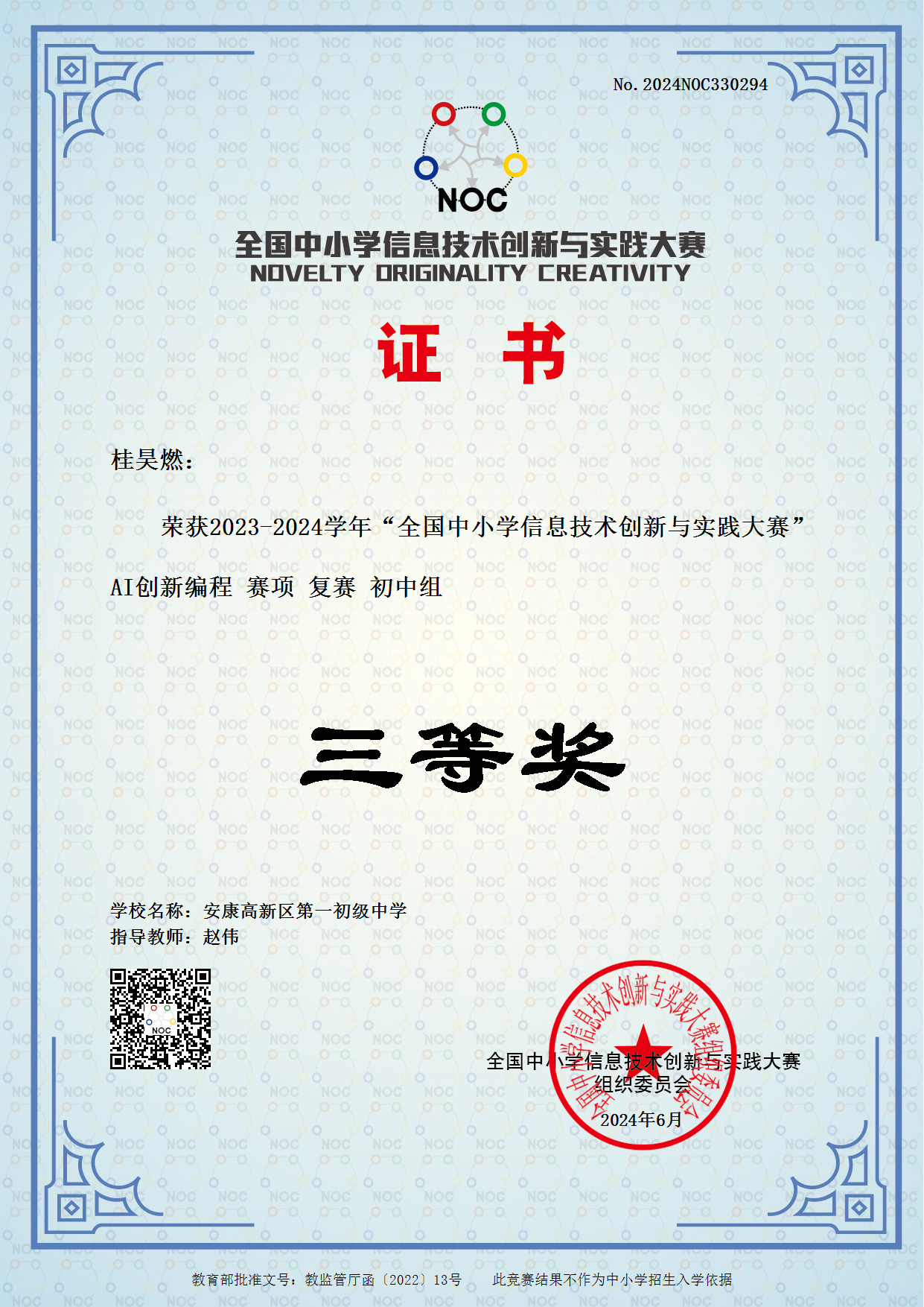 據(jù)悉,“全國中小學信息技術(shù)創(chuàng)新與實踐大賽(NOC,全稱為Novelty, Originality, Creativity)”是全國性的權(quán)威賽事,屬教育部白名單賽事,是一項運用信息技術(shù),培養(yǎng)廣大師生的創(chuàng)新精神和實踐能力,面向青少年學生開展人工智能科學普及、引領(lǐng)科技創(chuàng)新的素質(zhì)教育實踐平臺。??