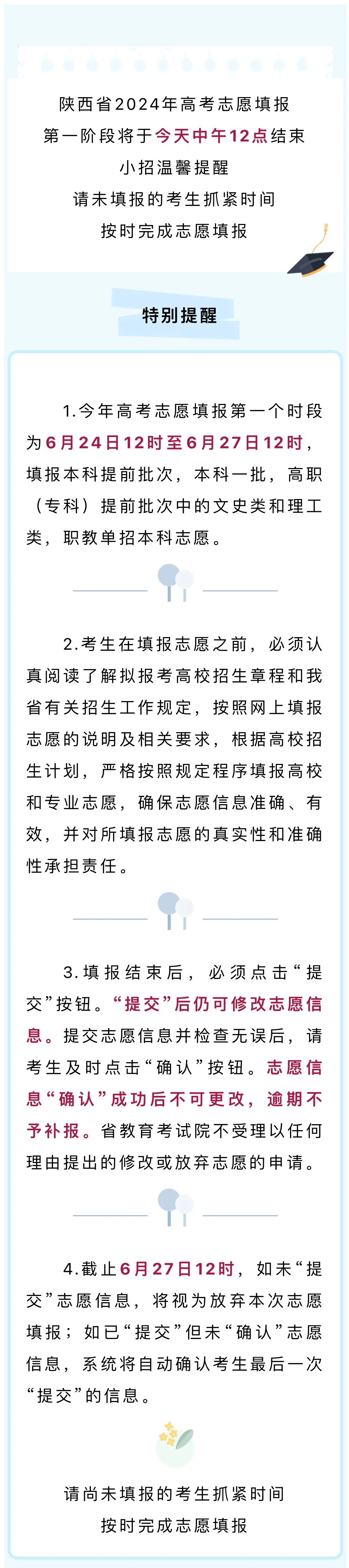 原題目:高考志愿填報(bào)將于今日中午12點(diǎn)結(jié)束,請(qǐng)尚未完成的考生抓緊時(shí)間
