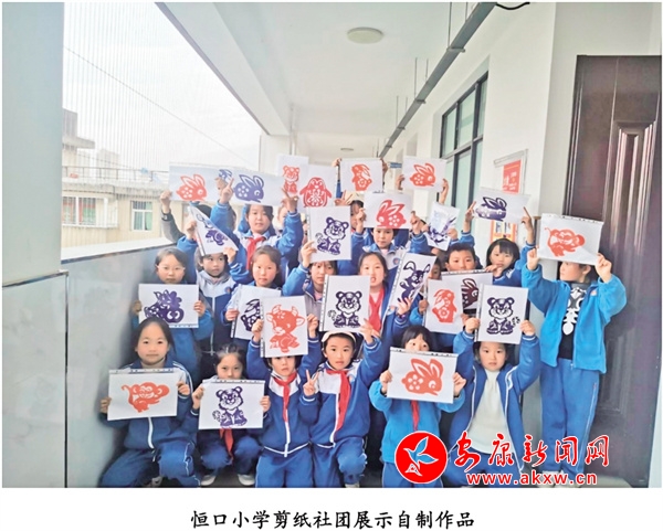 學(xué)生展示剪紙作品