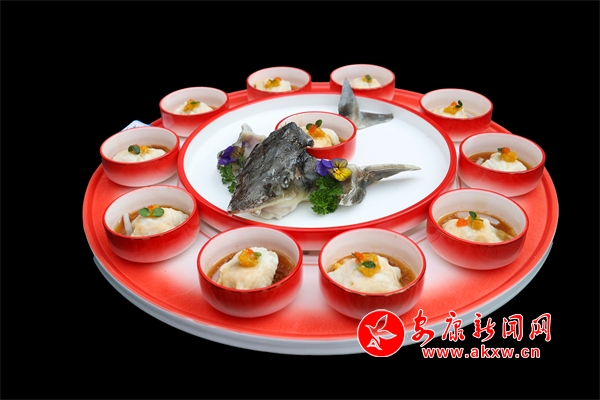 “陜南淡水魚餐飲暨‘贛義鑫杯’烹飪技能大賽”是張顯峰走出去學(xué)習(xí)交流檢驗自己菜品研究成果的平臺。在準(zhǔn)備本次比賽菜品時,他選用了紫陽縣最好的食材“富硒鱘魚”、花鰱魚,土黑豬五花肉及羊肚菌等蔬菜,精心制作了兩道菜品,第一道菜品是紫陽茶香宴中的主菜——茶香鱘龍。這道菜擺盤高雅,肉質(zhì)細(xì)膩,口味鮮美,茶香與淡水魚的完美結(jié)合,讓人仿佛置身于清新的茶山之間,品味著大自然的饋贈。