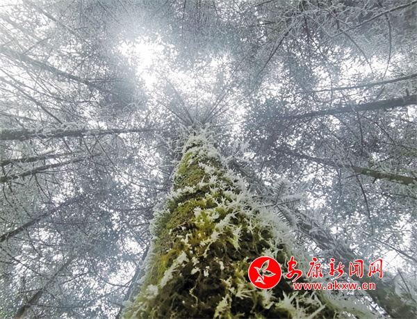 樹梢掛滿晶瑩的雪,仿佛盛開的銀花