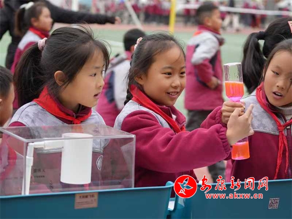 在各個科學實驗項目前,同學們駐足停留,認真觀察、反復操作,沉浸在知識的海洋與科技的奧秘中,操場上不時傳來陣陣驚嘆聲?!拔易罡信d趣的是機器人,通過手柄遙控能讓機器人模仿奔跑跳躍,跟我們打招呼,真是太神奇了,我以后要更加努力地學習科學知識,探索更多的未知領(lǐng)域。”五年級一學生激動地說。