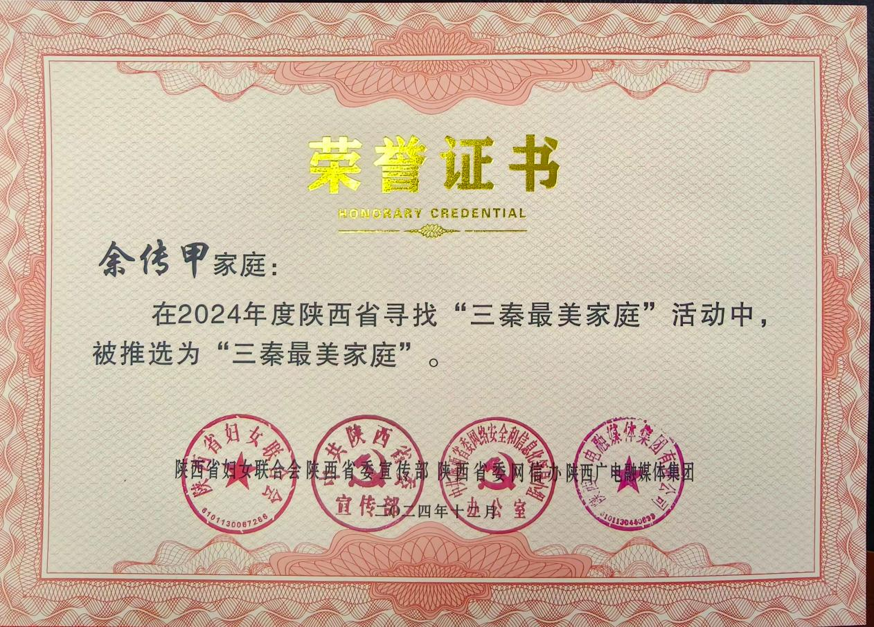 平利一家庭入選2024年“三秦最美家庭”