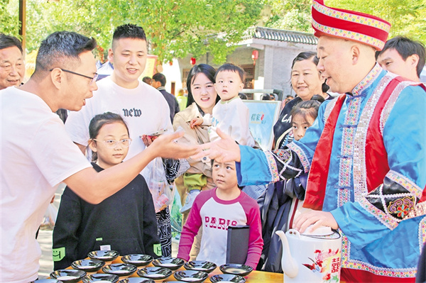 來自臺灣的游客阿偉第一次體驗(yàn)這“驚心動魄”的待客禮,雙手接碗,仰頭飲盡,再用力將碗口朝下摔向青石板?!斑旬?dāng)”一聲脆響,瓷片四濺,周圍頓時響起一片喝彩?!八ね氲臅r候,心里真痛快!”阿偉笑著說。