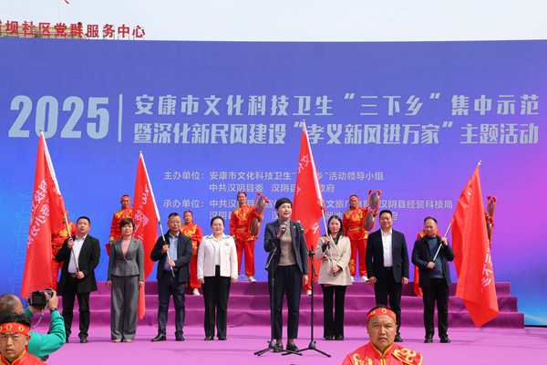 本網(wǎng)訊(通訊員 賈學(xué)林)文化惠民添活力,孝義新風(fēng)潤(rùn)安康。3月18日,2025年安康市文化科技衛(wèi)生“三下鄉(xiāng)”集中示范暨深化新民風(fēng)建設(shè)“孝義新風(fēng)進(jìn)萬(wàn)家”主題活動(dòng)在漢陰縣澗池鎮(zhèn)舉行。市委常委、宣傳部部長(zhǎng)陳蓮宣布活動(dòng)啟動(dòng)并向“三下鄉(xiāng)”服務(wù)小分隊(duì)授旗?!叭锣l(xiāng)”市級(jí)成員單位、漢陰縣有關(guān)負(fù)責(zé)同志參加活動(dòng)。