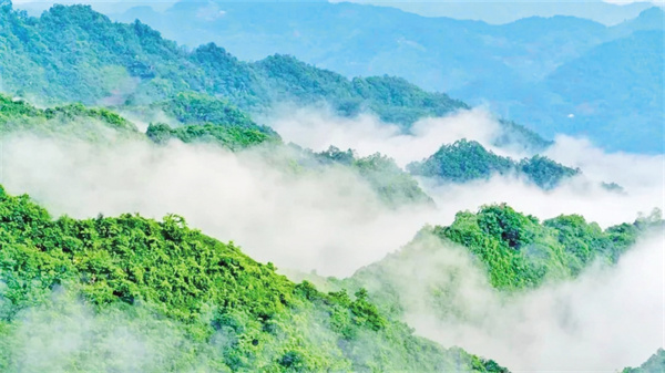 當春風揉碎了漢江的晨霧,紫陽縣青中村的云海便在山谷間舒展開來。這座懸于北緯32°的山間秘境,以800米海拔托起流動的瓊宇,用茶田織就青黛的綢緞。我循著四月春風的足跡,在云海與炊煙交織處,觸摸到山水田園詩最鮮活的注腳。