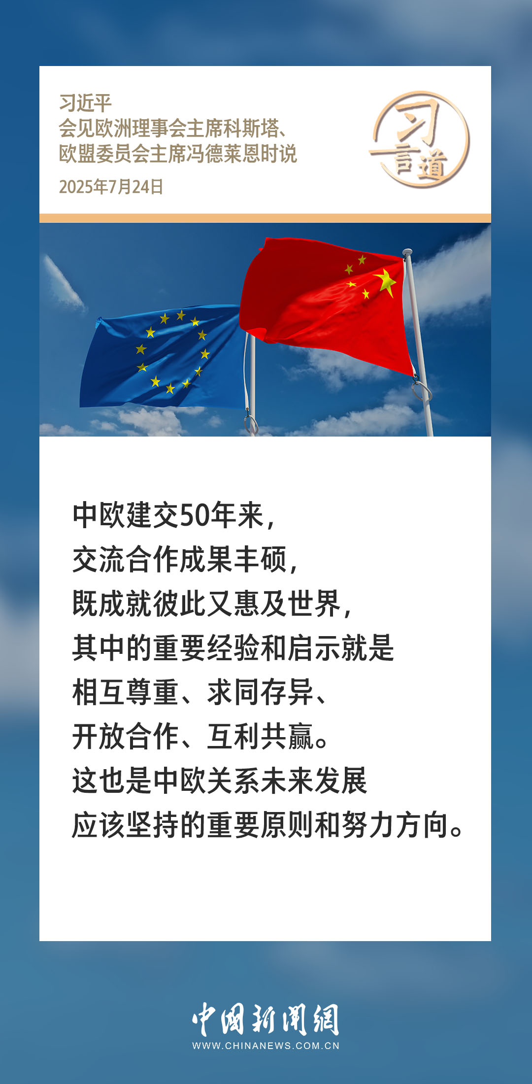 7月24日,國(guó)家主席習(xí)近平在北京人民大會(huì)堂會(huì)見(jiàn)來(lái)華舉行第二十五次中國(guó)-歐盟領(lǐng)導(dǎo)人會(huì)晤的歐洲理事會(huì)主席科斯塔和歐盟委員會(huì)主席馮德萊恩。習(xí)近平指出——