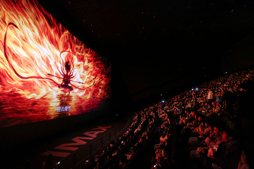 2025年2月25日,觀眾在貴陽(yáng)越界影城IMAX影廳內(nèi)觀看電影《哪吒之魔童鬧?!贰?dòng)畫(huà)電影《哪吒之魔童鬧?!纷?月29日上映后票房一路高歌猛進(jìn),僅用8天便登頂中國(guó)影史票房榜,隨后成為全球單一市場(chǎng)票房冠軍、全球動(dòng)畫(huà)電影票房冠軍。2025年以來(lái),國(guó)家電影局等相繼啟動(dòng)“跟著電影品美食”“跟著電影去旅游”“中國(guó)電影消費(fèi)年”活動(dòng),充分發(fā)揮電影對(duì)提振消費(fèi)的積極作用;各地文旅部門(mén)等通過(guò)發(fā)布觀影消費(fèi)券、舉辦主題活動(dòng)等形式推動(dòng)影旅融合,發(fā)展票根經(jīng)濟(jì)。