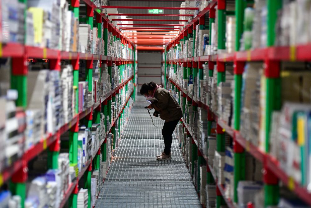 2025年2月19日,工作人員在泰安新聞出版小鎮(zhèn)圖書(shū)倉(cāng)庫(kù)內(nèi)整理書(shū)籍。近年來(lái),山東省泰安市立足出版印刷產(chǎn)業(yè)優(yōu)勢(shì),打造泰山新聞出版小鎮(zhèn),通過(guò)拉長(zhǎng)壯大產(chǎn)業(yè)鏈,推動(dòng)產(chǎn)業(yè)集聚發(fā)展,構(gòu)建龍頭引領(lǐng)、鏈條延伸、集群共進(jìn)的出版印刷產(chǎn)業(yè)“雁陣”。目前,小鎮(zhèn)已吸引60余家企業(yè)入駐,涵蓋編輯出版、印刷發(fā)行、倉(cāng)儲(chǔ)物流、版權(quán)交易、研學(xué)旅游等產(chǎn)業(yè)鏈各環(huán)節(jié)。