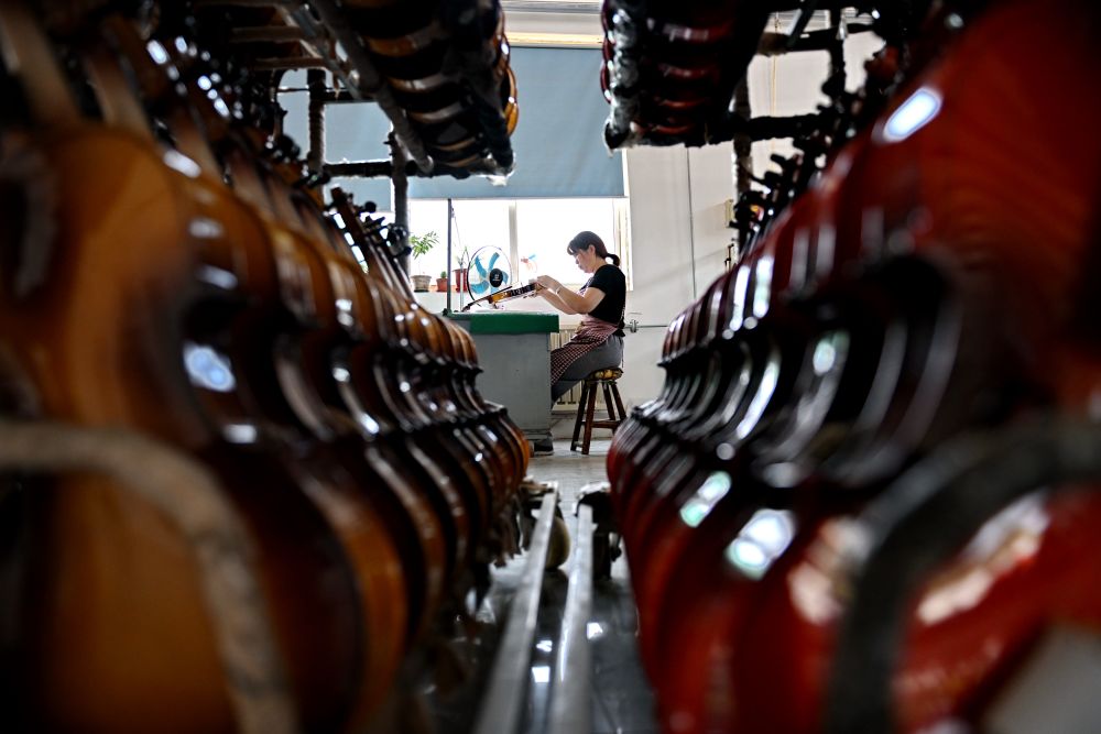 2025年5月28日,河北省武強(qiáng)縣一家樂(lè)器生產(chǎn)企業(yè)的工人在制作尤克里里。武強(qiáng)縣樂(lè)器產(chǎn)業(yè)歷經(jīng)30余年的發(fā)展,形成擁有超過(guò)150家企業(yè)、從業(yè)人員萬(wàn)余人的產(chǎn)業(yè)集群,產(chǎn)品覆蓋100多個(gè)品種、400多種規(guī)格。近年來(lái),武強(qiáng)縣依托樂(lè)器文化產(chǎn)業(yè)資源,打造集樂(lè)器加工、樂(lè)器體驗(yàn)、音樂(lè)展演和休閑度假等業(yè)態(tài)為一體的周窩音樂(lè)小鎮(zhèn),同時(shí)創(chuàng)新“樂(lè)器+”鄉(xiāng)村振興模式,持續(xù)增強(qiáng)樂(lè)器產(chǎn)業(yè)的富民強(qiáng)縣作用。2024年武強(qiáng)縣樂(lè)器產(chǎn)業(yè)實(shí)現(xiàn)營(yíng)收23.8億元,旅游收入超10億元。