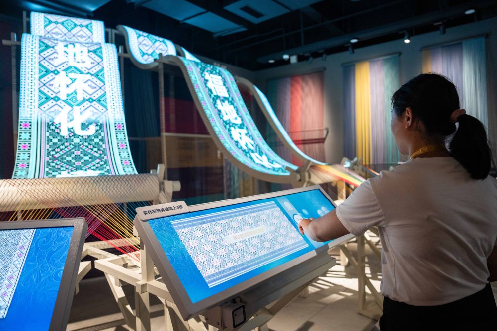 2025年9月16日,游客在湖南省懷化市五溪非遺園體驗(yàn)數(shù)字化織錦。五溪非遺園于2025年5月正式開(kāi)園,包含非遺廣場(chǎng)、數(shù)字體驗(yàn)空間和研學(xué)工坊三大板塊,運(yùn)用VR、AR、全息投影等技術(shù)打造42個(gè)沉浸式非遺體驗(yàn)項(xiàng)目。目前,懷化以五溪非遺園為抓手,推出非遺主題研學(xué)項(xiàng)目、開(kāi)發(fā)深度互動(dòng)項(xiàng)目,構(gòu)筑特色文化產(chǎn)業(yè)體系,吸引更多人了解、學(xué)習(xí)非遺,讓傳統(tǒng)技藝成為城市發(fā)展的文化動(dòng)力。