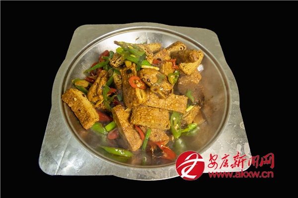 2011年,王鵬以糧食巷自己的住房為經(jīng)營場所注冊了寧陜縣菜根香私房菜菜館。同年,他又注冊成立了菜根香餐飲文化有限公司,致力于推廣地方餐飲文化。這里也是王鵬做高端菜品創(chuàng)作的起點(diǎn)。以土雞、山藥、蕓豆為主料的“瓦罐雞”經(jīng)過小火慢燉,雞肉軟嫩,湯清味鮮?!案慑伇ざ垢笔嵌垢すu蛋液在高溫下油炸后配以臘肉炒制調(diào)味后放入干鍋中,豆腐皮外形就有了豹紋,匠心制作的菜品咸香、豆香、復(fù)合香,自是山珍中難得的美味。10多年過去,這道菜仍然是大眾點(diǎn)評中的熱選菜品。