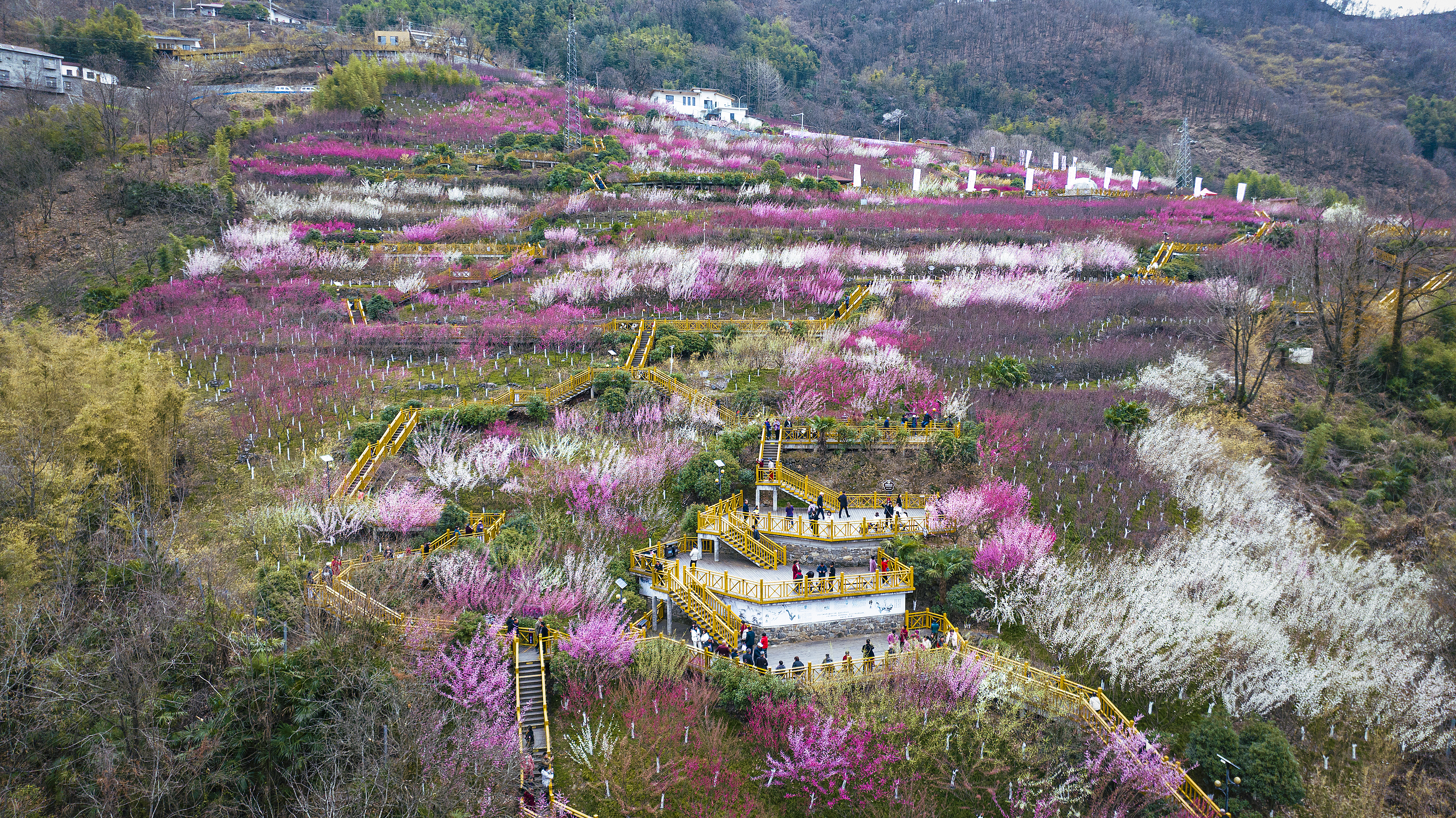 近日,寧陜縣梅子鎮(zhèn)子午梅苑的梅花凌寒盛放。百畝花海粉白相間、蔚為壯觀,吸引眾多游客聞香而至。(董長(zhǎng)松 攝)
