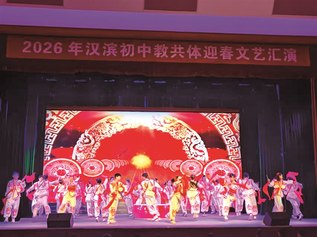 2月4日,漢濱初中教育共同體舉辦“同心筑夢傳薪火·和美共生向未來”迎春文藝匯演。演出分為“薪火相傳”“融合共進”“夢想綻放”三大篇章,通過舞蹈、朗誦、非遺展示、音樂快板等豐富形式,生動展現(xiàn)了教育的初心使命與育人成果。 朱合玲 攝