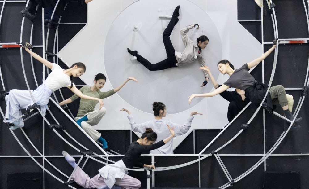 這是舞劇《永樂未央》中《璇璣萬象》段落的排練現(xiàn)場(2025年7月16日攝)。