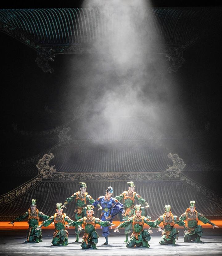 這是舞蹈詩劇《只此青綠》的演出劇照(2024年7月18日攝)?!吨淮饲嗑G》采用平行空間的敘事方式,從故宮博物院青年研究員的“展卷人”視角出發(fā),講述北宋著名畫家王希孟創(chuàng)作《千里江山圖》的故事。該劇連續(xù)3年穩(wěn)居中國舞劇票房榜首,全國巡演超800場,赴多個國家和地區(qū)演出50余場,成為傳統(tǒng)文化創(chuàng)新表達、中國藝術(shù)國際表達的典范之作。