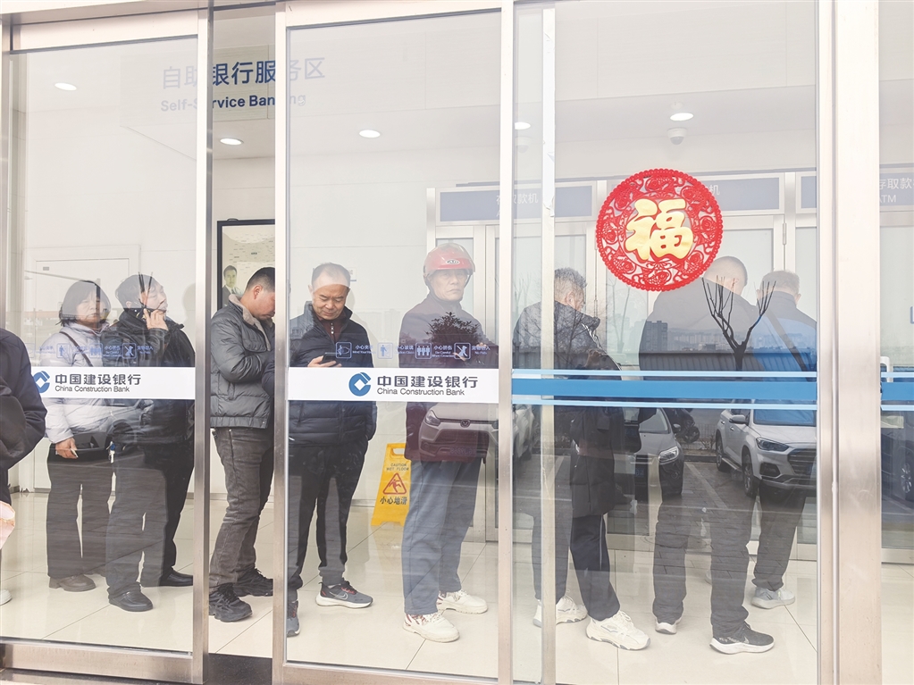 ④ 2月15日,漢濱區(qū)江北大道一家24小時(shí)自助銀行里,取錢的市民排起了長隊(duì)。秦 英 攝