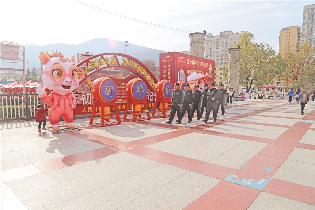 ⑤ 旬陽公安特警春節(jié)期間全警力投入,在重要時(shí)段、人群密集場(chǎng)所加強(qiáng)巡邏。李鵬 攝