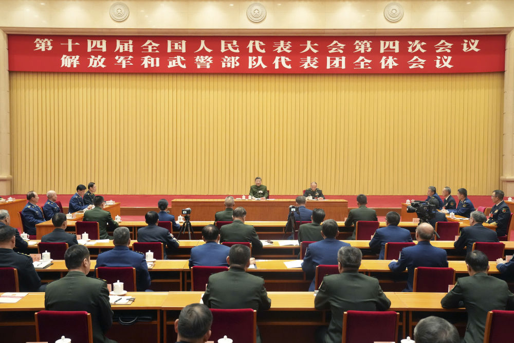 3月7日下午,中共中央總書(shū)記、國(guó)家主席、中央軍委主席習(xí)近平出席十四屆全國(guó)人大四次會(huì)議解放軍和武警部隊(duì)代表團(tuán)全體會(huì)議并發(fā)表重要講話。新華社記者 李剛 攝