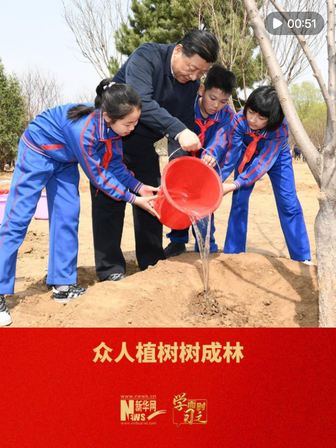 黨的十八大以來,習(xí)近平總書記每年都會身體力行,參加首都義務(wù)植樹活動。他強調(diào),讓我們從自己、從現(xiàn)在做起,把接力棒一棒一棒傳下去。