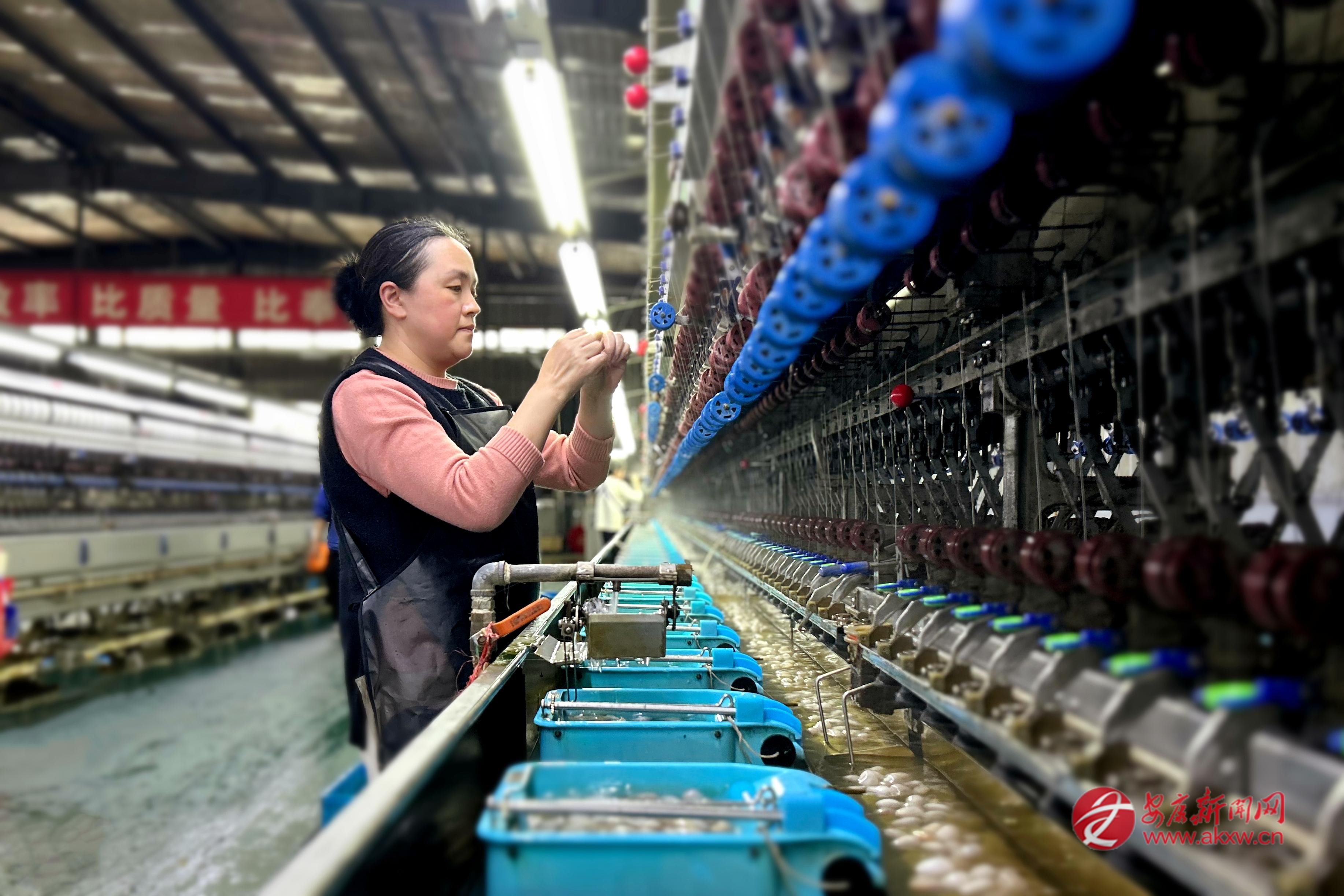 “今年國內(nèi)高端家紡市場需求旺盛,訂單一直很充足?!逼髽I(yè)負責人孫浩勇介紹,依托本地優(yōu)質(zhì)蠶繭,企業(yè)滿負荷生產(chǎn)。同時,通過“企業(yè)+合作社+農(nóng)戶”利益聯(lián)結機制,天成絲業(yè)與數(shù)千戶蠶農(nóng)簽訂保底收購協(xié)議,提供全流程服務,實現(xiàn)企業(yè)增效、蠶農(nóng)增收。