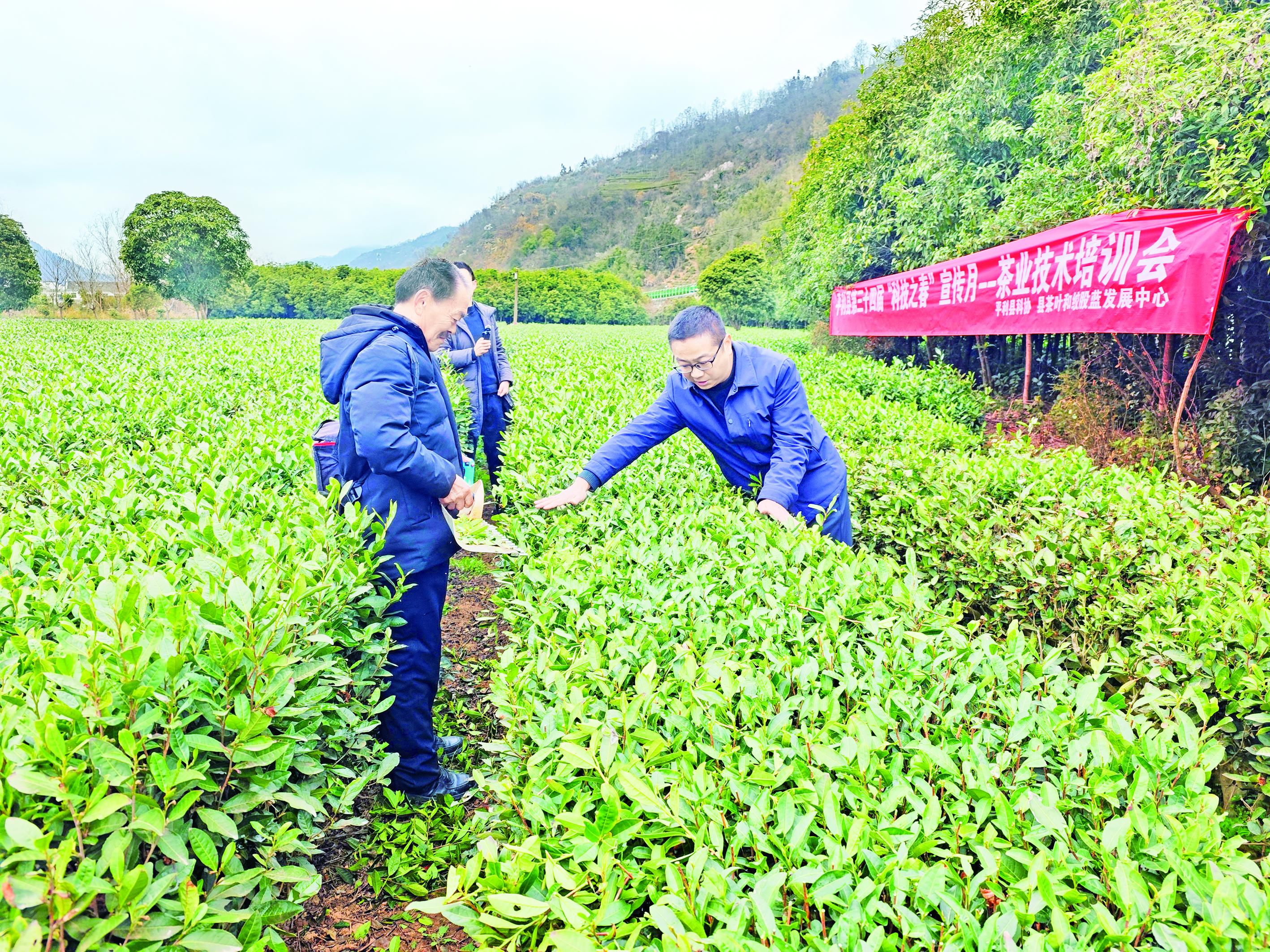 2月26日,平利縣開展茶葉技術(shù)培訓(xùn)。圖為專家在茶園指導(dǎo)采茶技術(shù)。