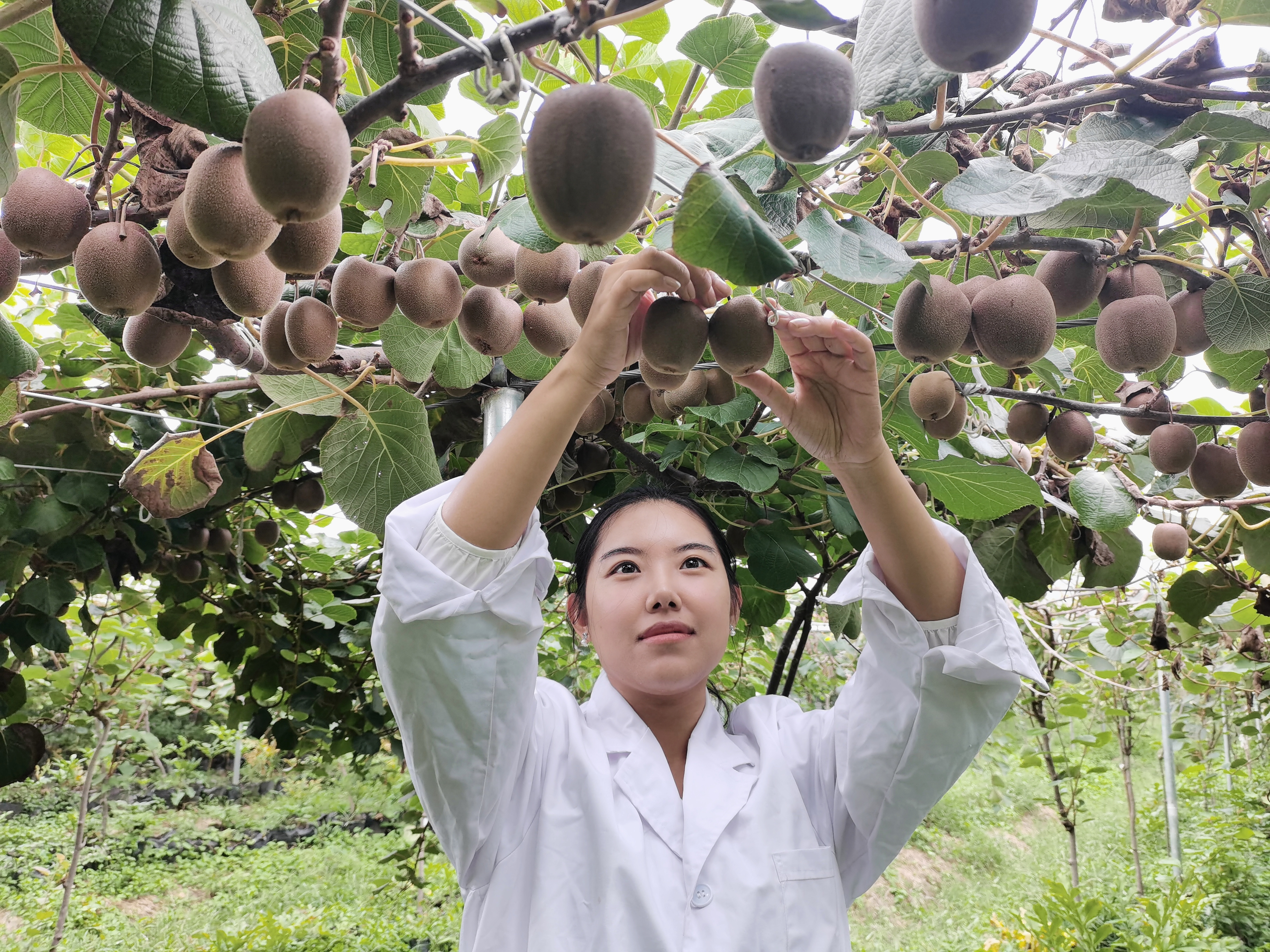 張文慧查看獼猴桃長勢
