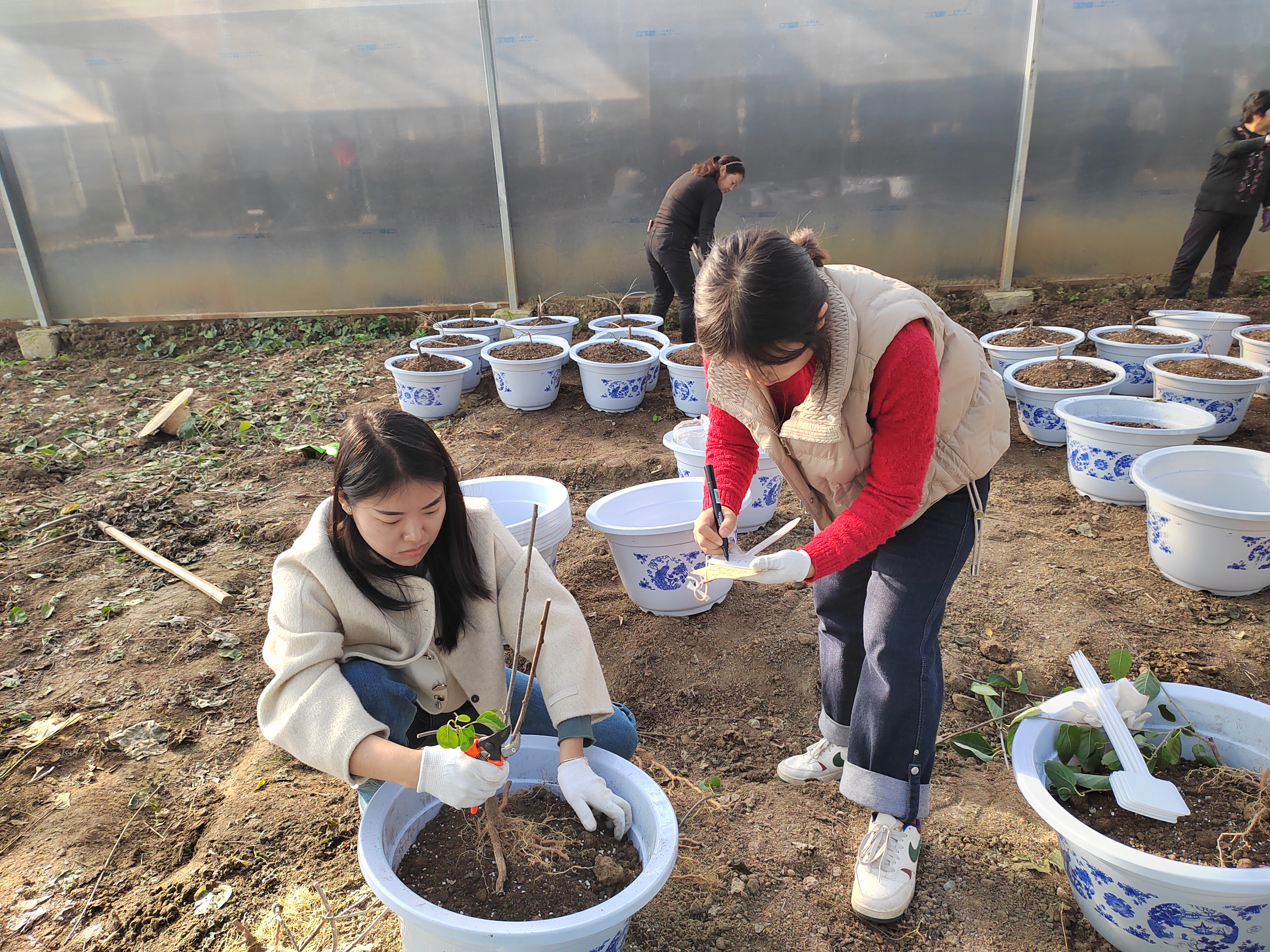 張文慧(左)與團(tuán)隊(duì)成員在試驗(yàn)基地工作