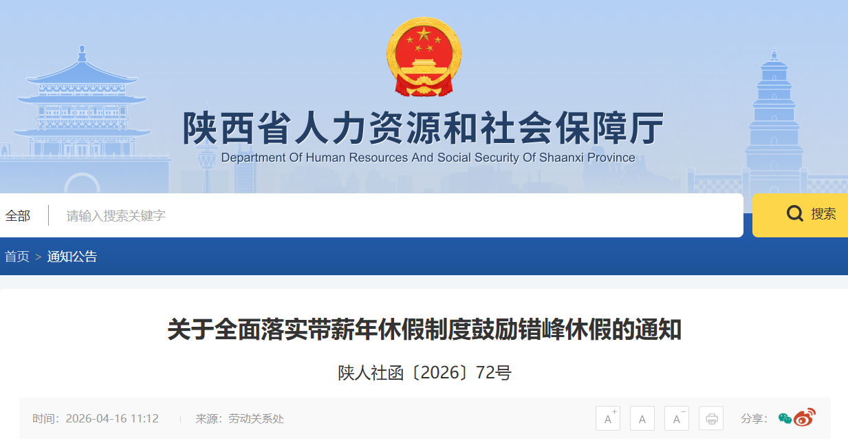 陜西發(fā)布最新通知:全面落實(shí)帶薪年休假制度+鼓勵錯峰休假