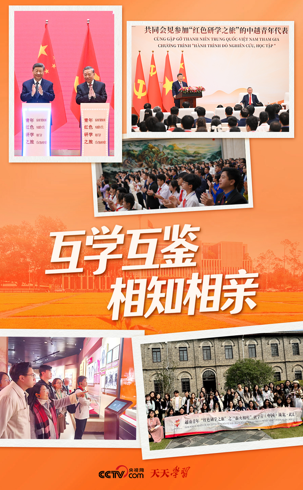 2025年4月15日,習(xí)近平總書(shū)記在訪問(wèn)越南期間宣布,中方將在今后3年邀請(qǐng)?jiān)侥锨嗄旮叭A開(kāi)展“紅色研學(xué)之旅”,沿著兩黨兩國(guó)老一輩領(lǐng)導(dǎo)人的革命足跡,探尋中越友好的紅色基因,感受中國(guó)式現(xiàn)代化的萬(wàn)千氣象,為兩國(guó)各自社會(huì)主義事業(yè)和構(gòu)建具有戰(zhàn)略意義的中越命運(yùn)共同體凝聚青春力量。當(dāng)日,中越兩黨兩國(guó)領(lǐng)導(dǎo)人與雙方代表共同按下按鈕,啟動(dòng)“紅色研學(xué)之旅”項(xiàng)目,為兩國(guó)青年搭建起跨越國(guó)界、聯(lián)結(jié)初心的友誼橋梁。