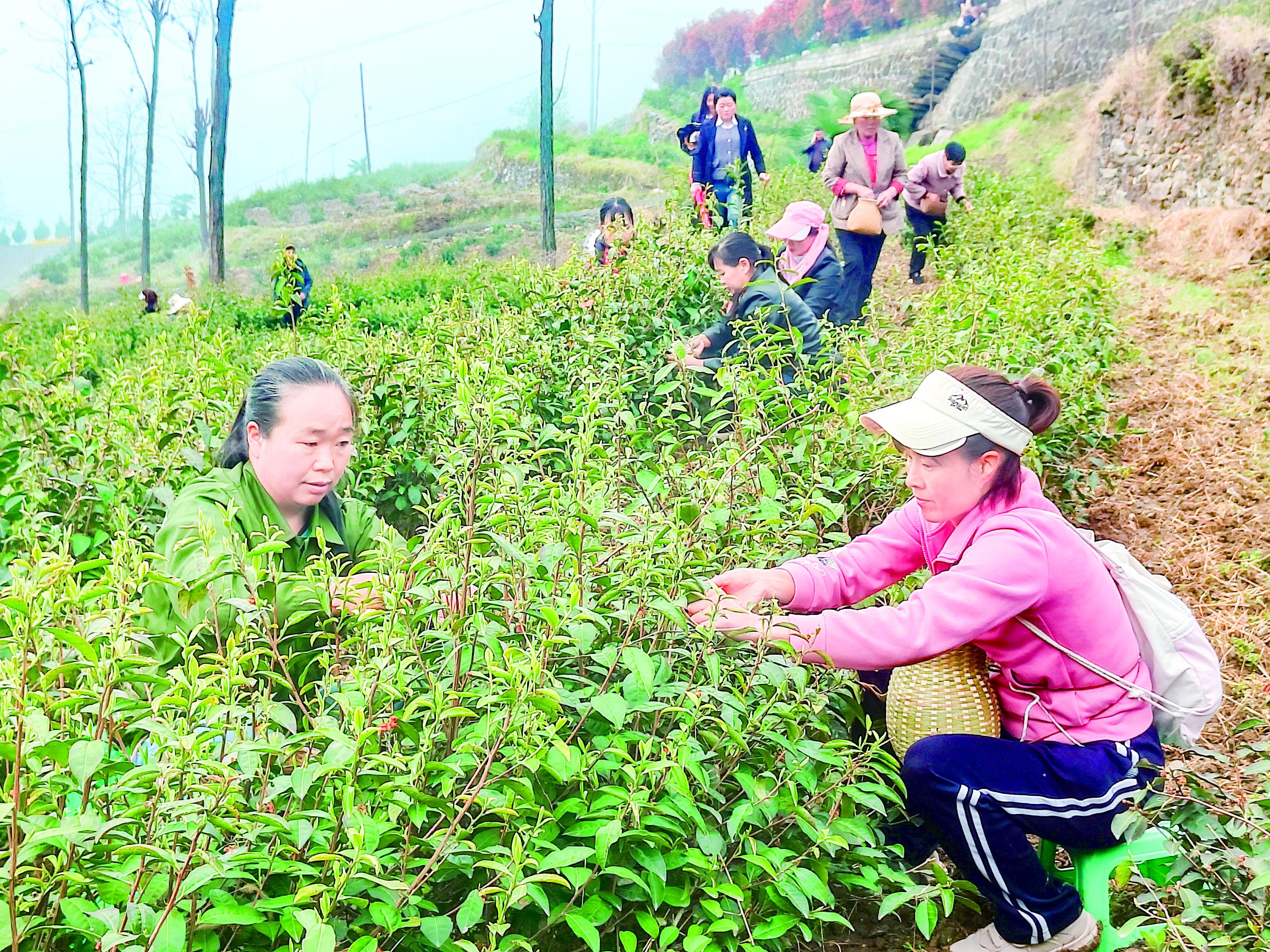 繁忙的采茶季,也為周邊村民搭建起家門口的增收平臺(tái)。進(jìn)入采茶期后,茶園日均用工50余人,高峰期超百人,村民人均日收入可達(dá)100元至150元。“我家離得近,每年這個(gè)時(shí)候都來(lái)采茶,一季下來(lái)能掙幾千元?!闭诓刹璧拇迕裾f(shuō)。