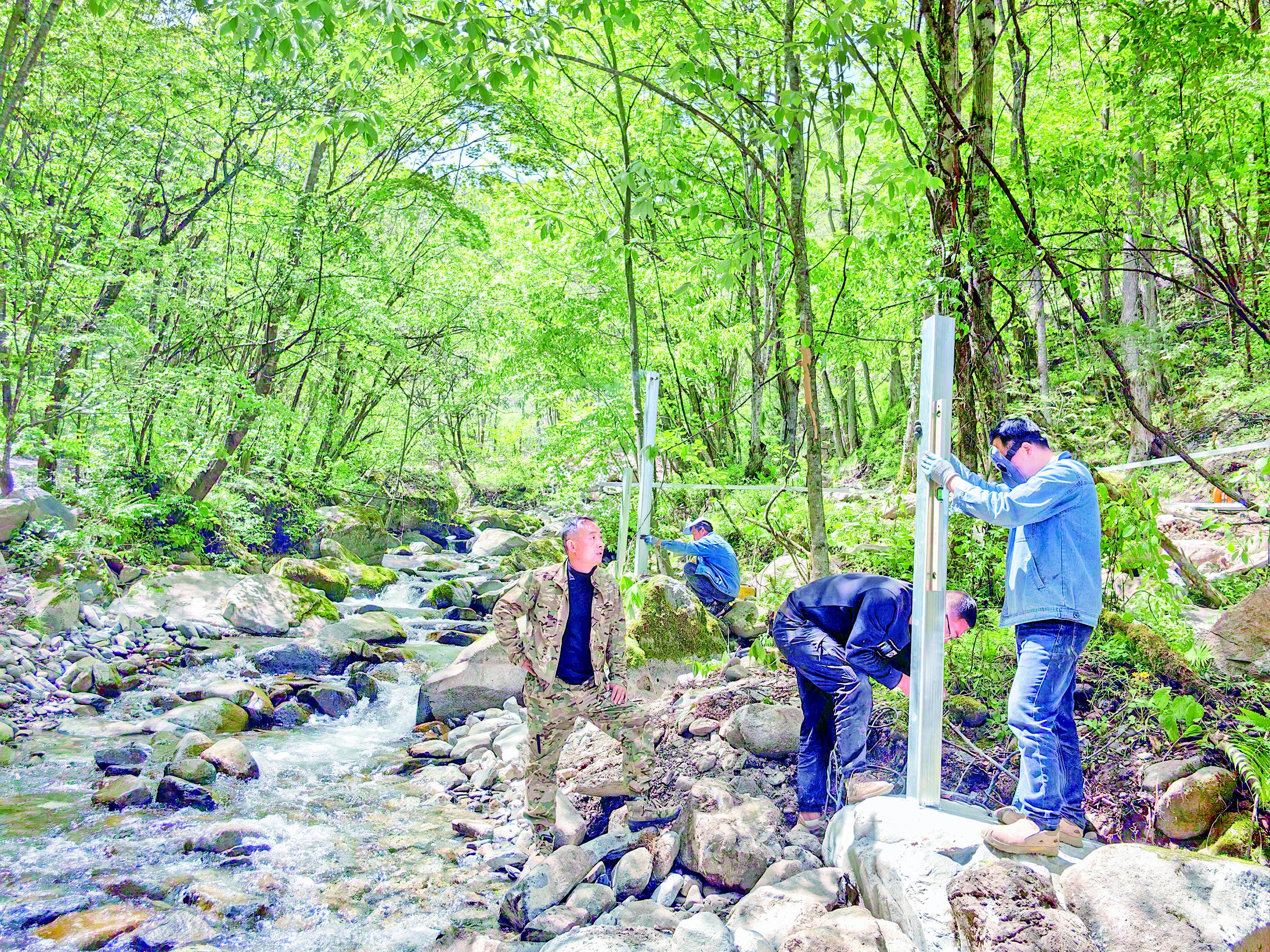 葉勝峰(左一)和工人正忙著建設(shè)溪邊咖啡平臺(tái)。(采訪對(duì)象供圖)