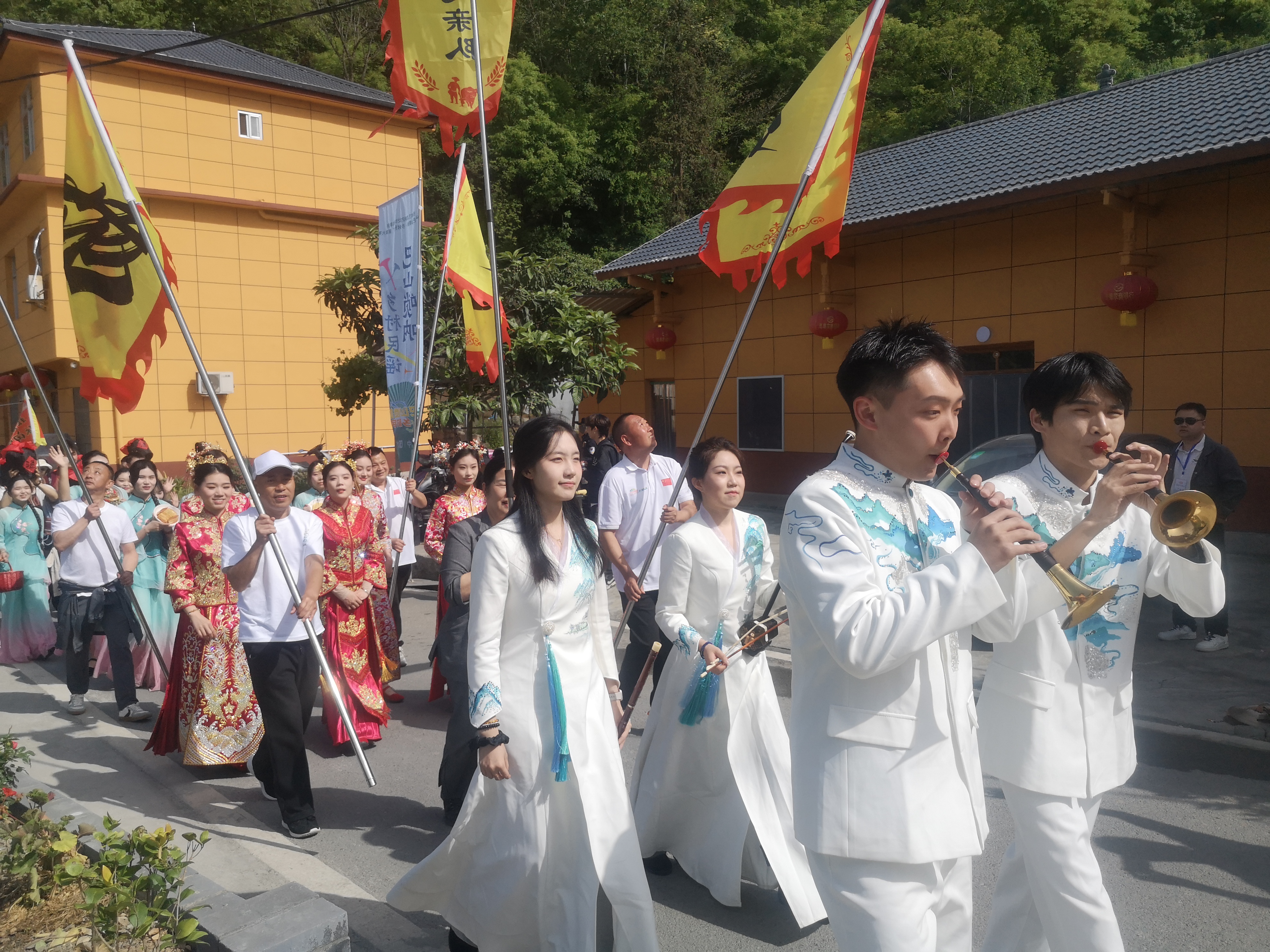 當(dāng)日上午,12支參賽隊(duì)伍沿“茅坪歲月”民宿集群街區(qū)開展巡游展演,吸引眾多游客和群眾駐足觀看。10時(shí)30分,伴隨著《大道鑼鼓迎客來》鏗鏘有力的鼓點(diǎn),大賽正式拉開序幕。