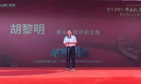 ????而黃山昌仁醫(yī)院新院區(qū)從前期籌劃到正式落成,也得到了市委、市政府的大力支持!在開業(yè)儀式上,黃山市政協(xié)副主席胡黎明先生也上臺(tái)致詞,為昌仁送上了衷心的祝愿!