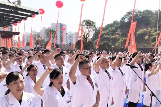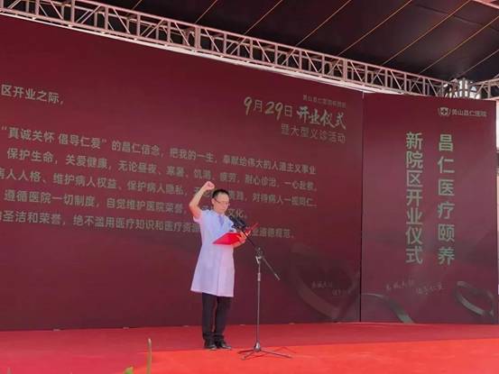 ????黃山昌仁醫(yī)院業(yè)務(wù)院長(zhǎng)潘峻濤先生帶領(lǐng)醫(yī)護(hù)人員代表在國(guó)旗下莊嚴(yán)宣誓。正如誓詞所說(shuō):“此后將秉承救死扶傷的信念,竭盡全力,保護(hù)生命,關(guān)愛健康,無(wú)論晝夜、寒暑、饑渴、疲勞,耐心診治,一心赴救?!?/p>