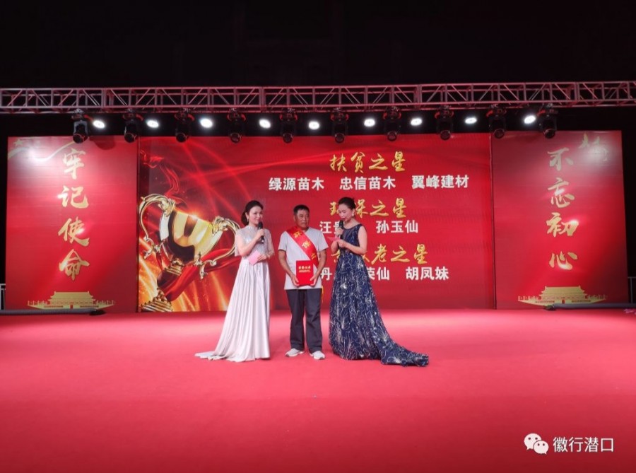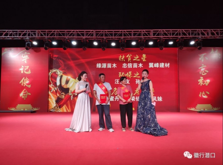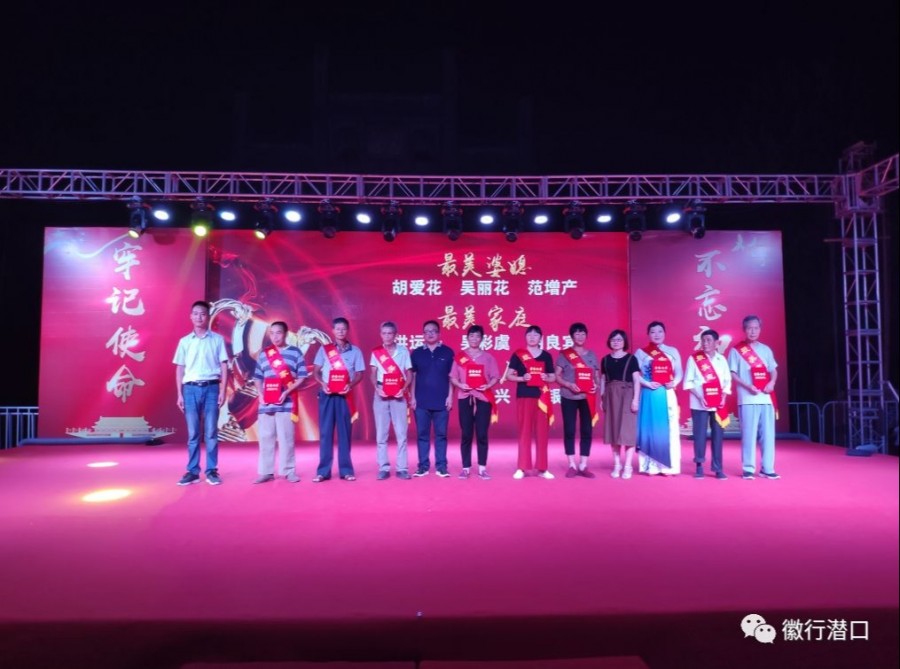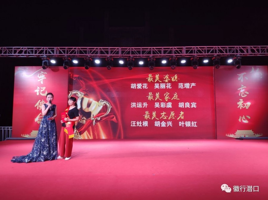 ? 演出在歌伴舞《我和我的祖國(guó)》中拉開(kāi)帷幕,舞蹈、雜技、戲曲等17個(gè)節(jié)目一一登場(chǎng)?!吨袊?guó)脊梁》《最美中國(guó)》《紅紅中國(guó)情》《雙腳踏上幸福路》《當(dāng)官難》等群眾喜聞樂(lè)見(jiàn)的鄉(xiāng)土文藝節(jié)目,情感真摯、扣人心弦,唱響時(shí)代主旋律,弘揚(yáng)優(yōu)秀傳統(tǒng)文化?!队⑿郾旧贰蹲W鎳?guó)三杯酒》《徽州美》《歡歌潛口》等由各村選送的節(jié)目,將全場(chǎng)氣氛推向高潮。同時(shí),晚會(huì)穿插了“扶貧之星”“環(huán)保之星”“最美志愿者”表彰活動(dòng),倡導(dǎo)社會(huì)新風(fēng)尚;并開(kāi)展了“脫貧攻堅(jiān)”“人居環(huán)境整治”“掃黑除惡”“民生工程”“安全生產(chǎn)”等方面的有獎(jiǎng)競(jìng)答,大家積極參與,現(xiàn)場(chǎng)氣氛活躍。